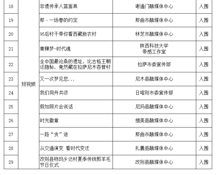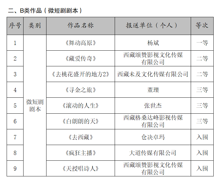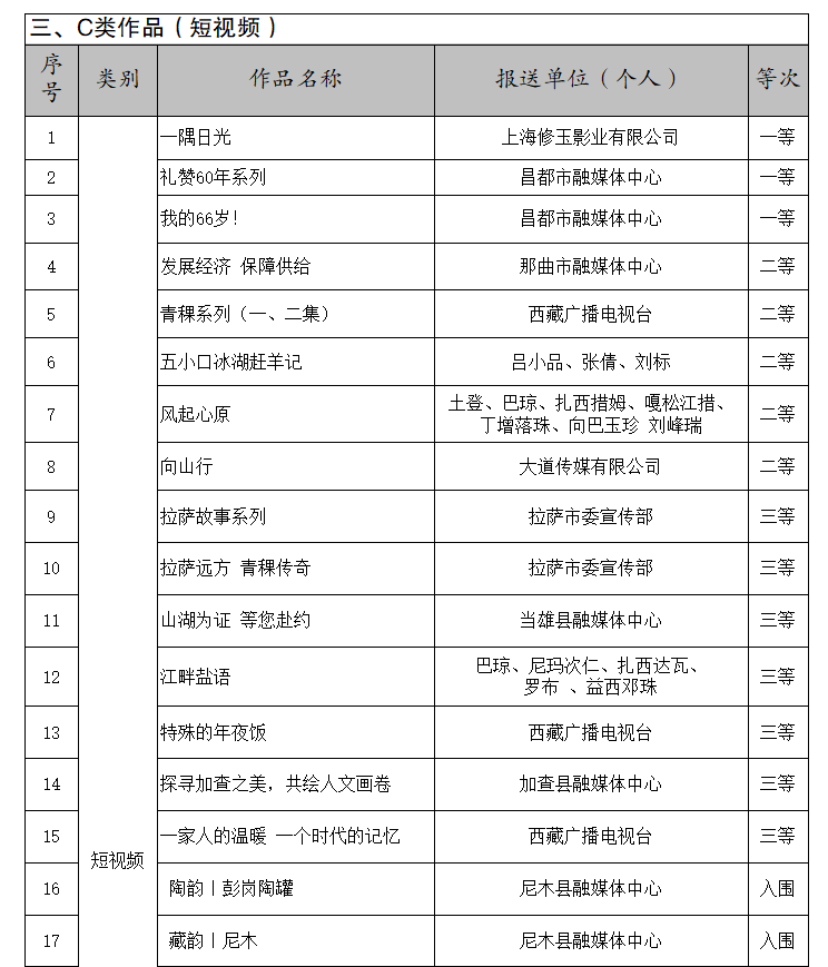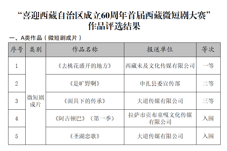关于“喜迎西藏自治区成立60周年首届西藏微短剧大赛”评选结果的公示
