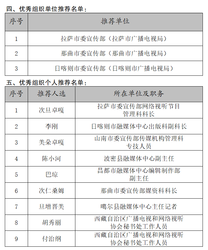 经自治区党委宣传部批准,我局举办的“喜迎西藏自治区成立60周年首届西藏微短剧大赛”(以下简称“大赛”),已完成作品征集评选工作。现将大赛评选结果、优秀组织单位和优秀组织个人推荐名单予以公示。公示时间:2025年8月18日至22日。