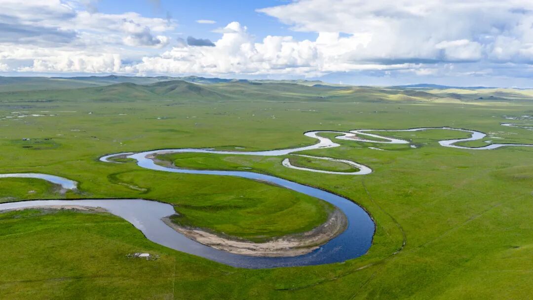 内蒙古呼伦贝尔市陈巴尔虎旗莫尔格勒河风光(无人机照片)。新华社记者 马金瑞 摄