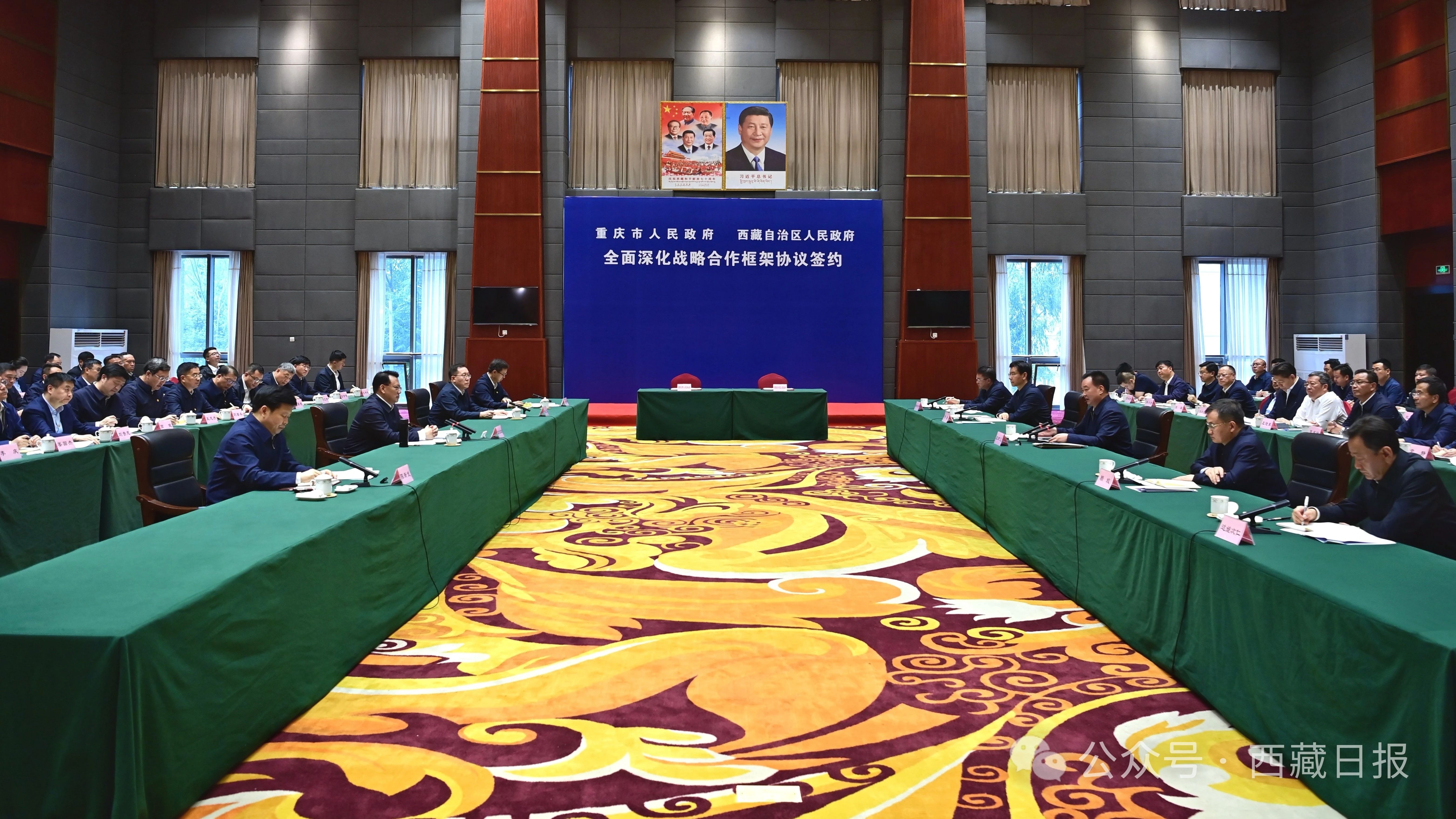 重庆市领导蔡允革、陈新武、但彦铮,西藏自治区领导赖蛟、任维、达娃次仁、龚会才参加座谈会。陈新武、任维分别介绍两地经济社会发展和交流合作情况,并代表两地签署《重庆市人民政府西藏自治区人民政府全面深化战略合作框架协议》。
