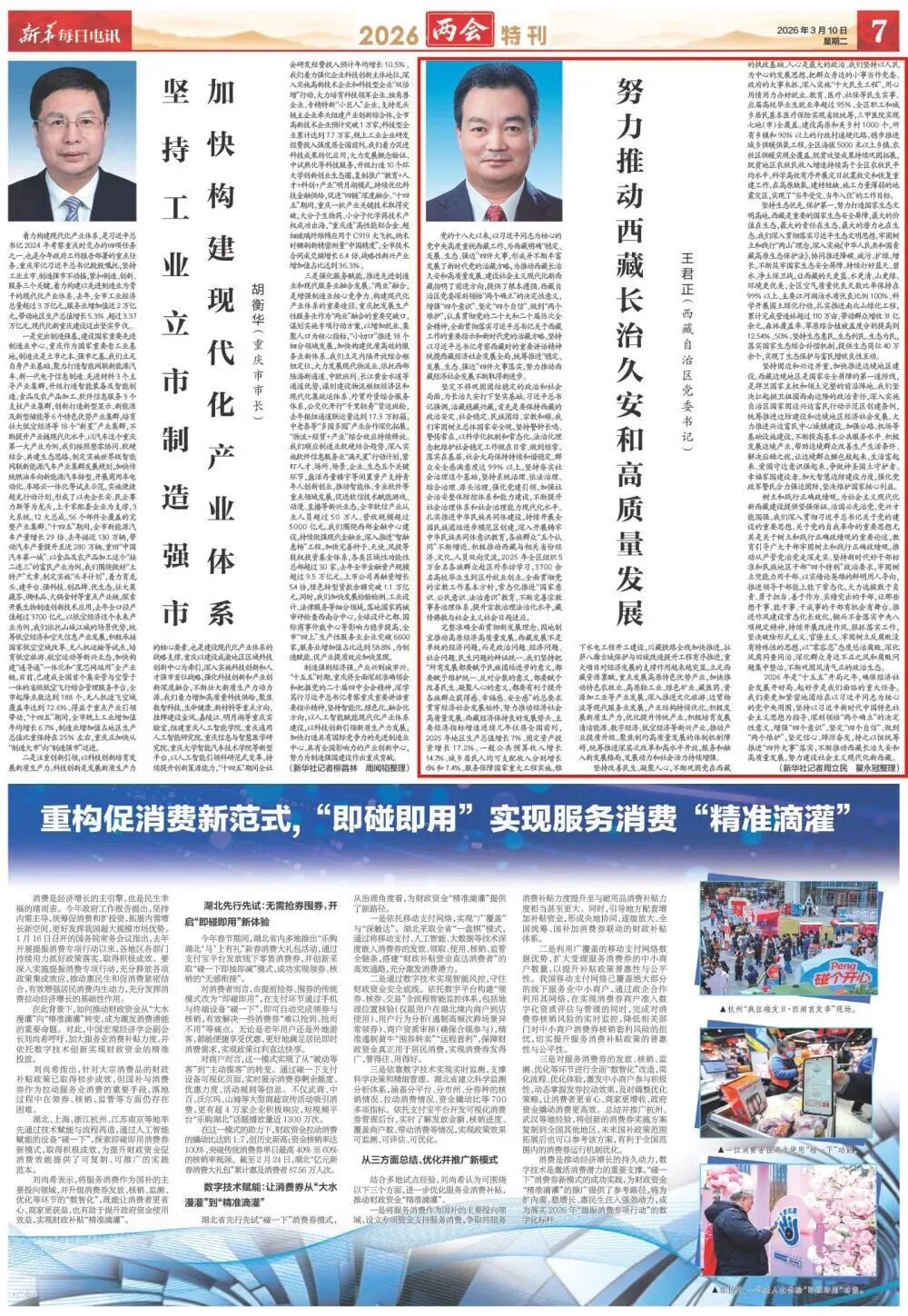 3月10日出版的《新华每日电讯》刊登了西藏自治区党委书记王君正的署名文章《努力推动西藏长治久安和高质量发展》。全文如下: