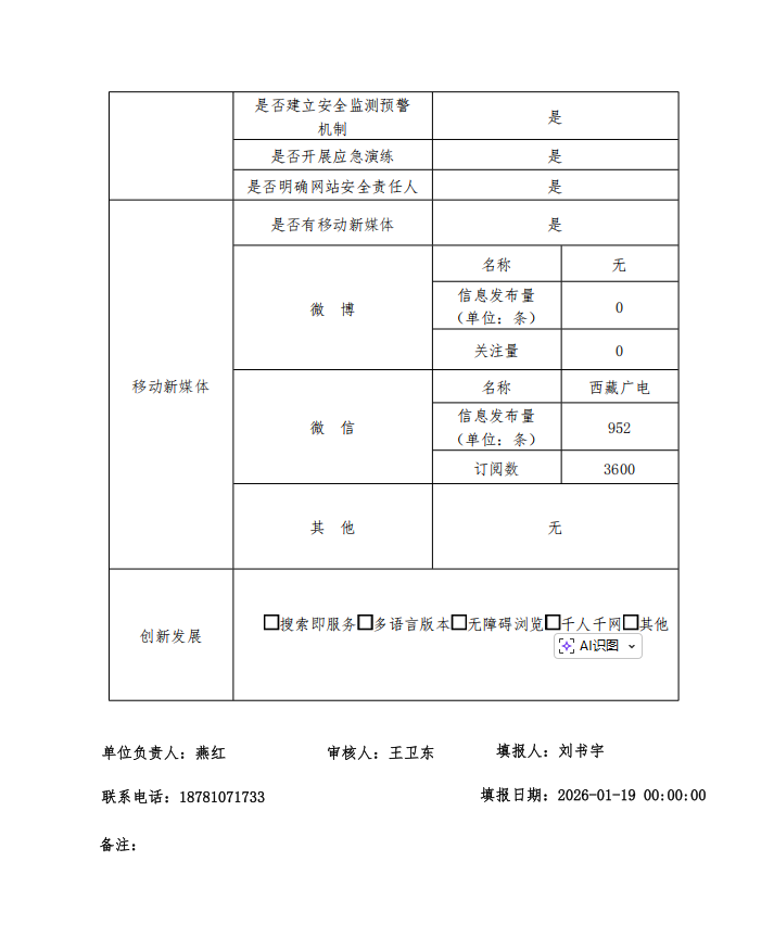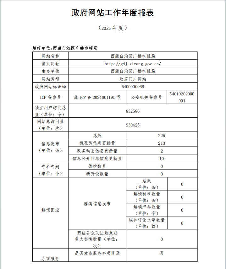 西藏自治区广播电视局政府网站工作年度报表