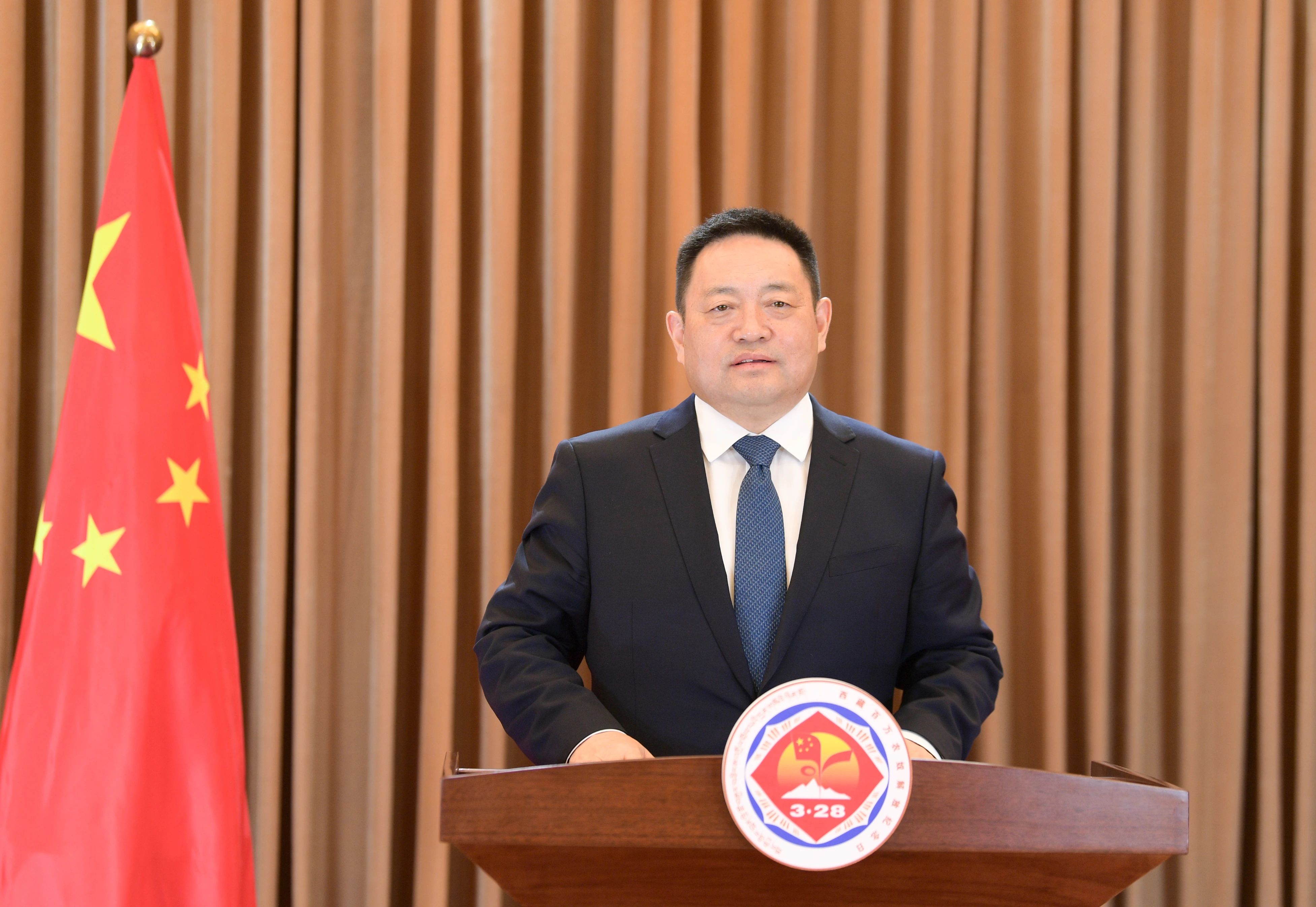 同志们,朋友们!起航新征程,逐梦再出发。让我们更加紧密地团结在以习近平同志为核心的党中央周围,在自治区党委的坚强领导下,全面贯彻落实习近平总书记关于西藏工作的重要指示和新时代党的治藏方略,奋力推进西藏长治久安和高质量发展,以优异成绩迎接自治区成立60周年!